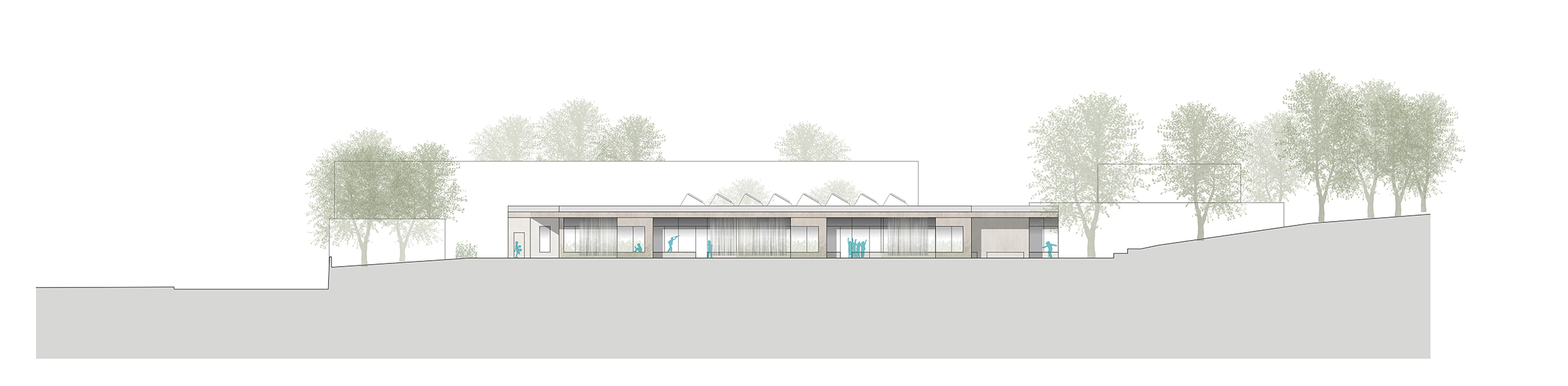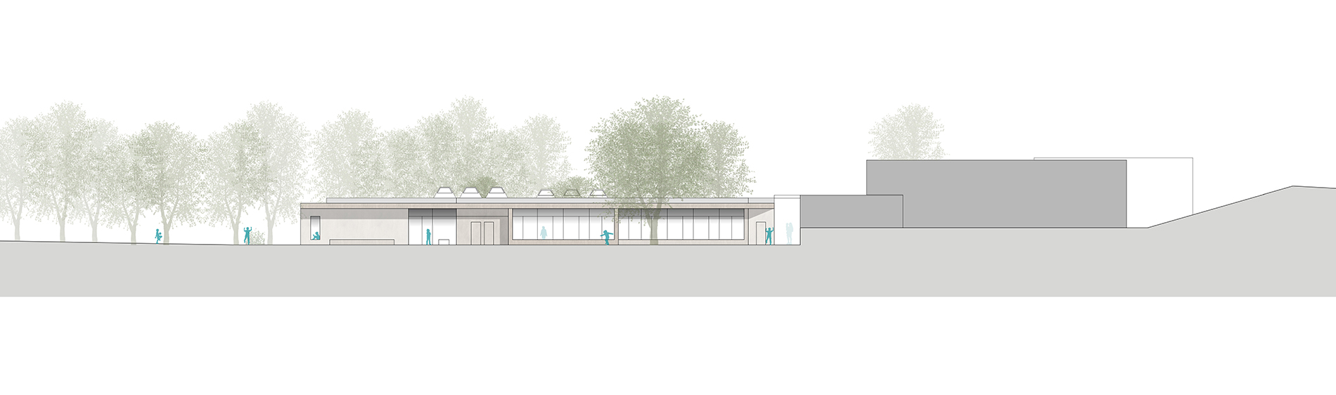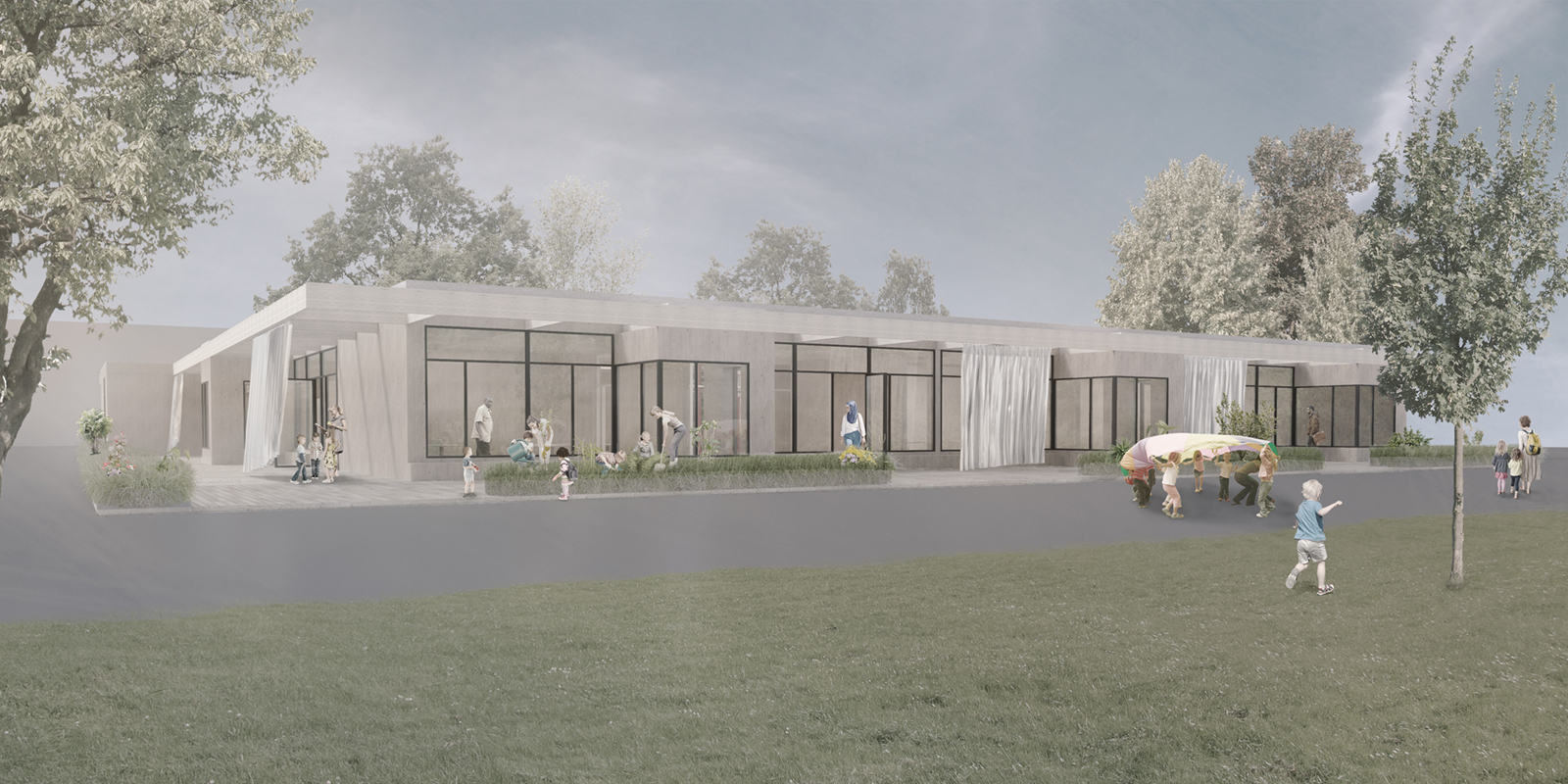 Ein Neubau für die KGS Bildchen schafft die Möglichkeit, die vielen wichtigen Mitspieler an diesem Ort zu einem starken Ensemble zusammen zu bringen, das altersübergreifend eine Bildungsheimat der Kinder in Aachen Preuswald bildet. Diesem Gedanken folgend schlagen wir die Schaffung eines Campus vor: Die neue Schule, Bibliothek, Jugendzentrum und Kindergarten gruppieren sich um einen neu geschaffenen zentralen Platz mit eindeutiger Adressbildung am Hauseter Weg. Die Bestandsbauten werden konzeptionell einbezogen und das neue Schulhaus zum integrativen Bestandteilen des Ensembles.