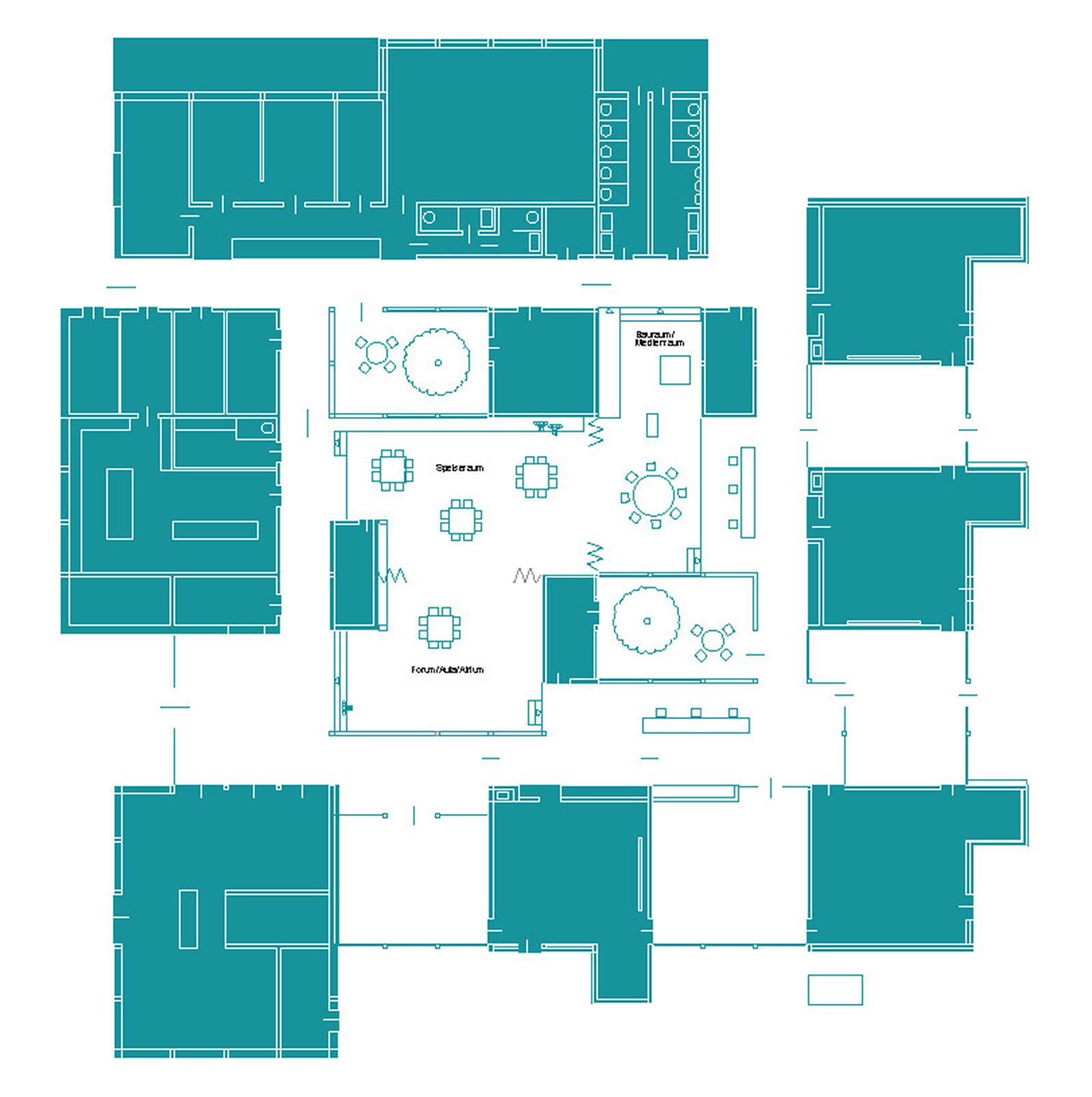 Ganztägiger Aufenthalt in der Schule erfordert einprägsame starke Räume, die Heimat und Identität bieten. Die „Neue Mitte“ ist zentrales Leitbild der geplanten neuen „Bildungsheimat“.