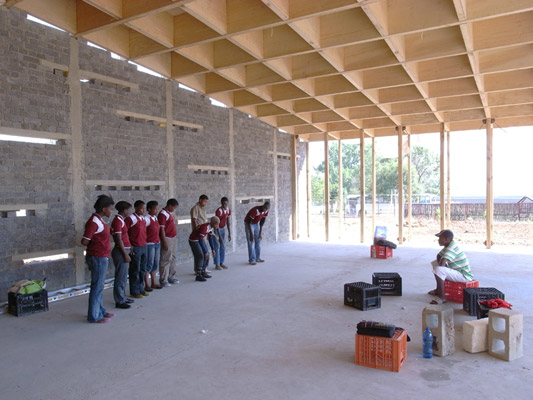 Montic I entstand im Frühjahr 2006. Der Kindergarten ist Teil der Montic Primary School, die auf dem Grundstück der privaten Molkerei Montic, liegt. Das neue Gebäude besteht aus 4, 25 qm großen Gruppenräumen sowie einer Küchen- und Toiletteneinheit. Zu 80% findet der Kindergarten im Freien statt. Dem gesamten Komplex vorgelagert liegt daher eine großzügige Veranda, ein Riesensandkasten und eine Pergola, die sonnen- und regengeschützt bespielbare Freiräume für die Kinder bietet. Der Kindergarten ist in Holzrahmenbauweise, aus ortsüblichen, vertikal und horizontal gleichstarken zusammengesetzten Holzprofilen konstruiert. Fassade und Innenwände sind als durchgehendes Regalsystem nutzbar. Das auskragende Doppeldach schützt im Sommer vor Sonneneinstrahlung und Aufheizung.