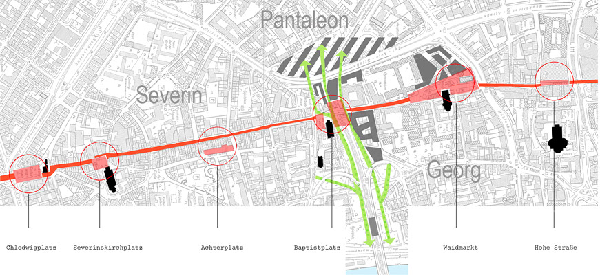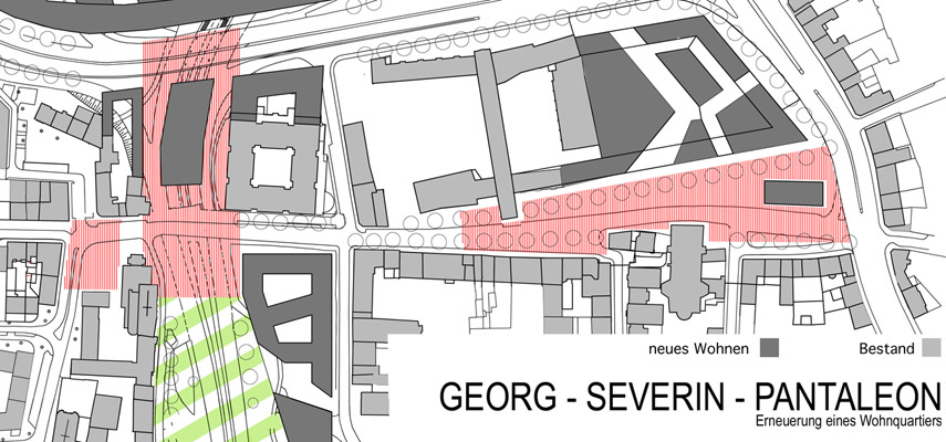 - Anbindung des isolierten Pantaleonsquartiers über die Nord-Süd-Fahrt an das Rheinufer.