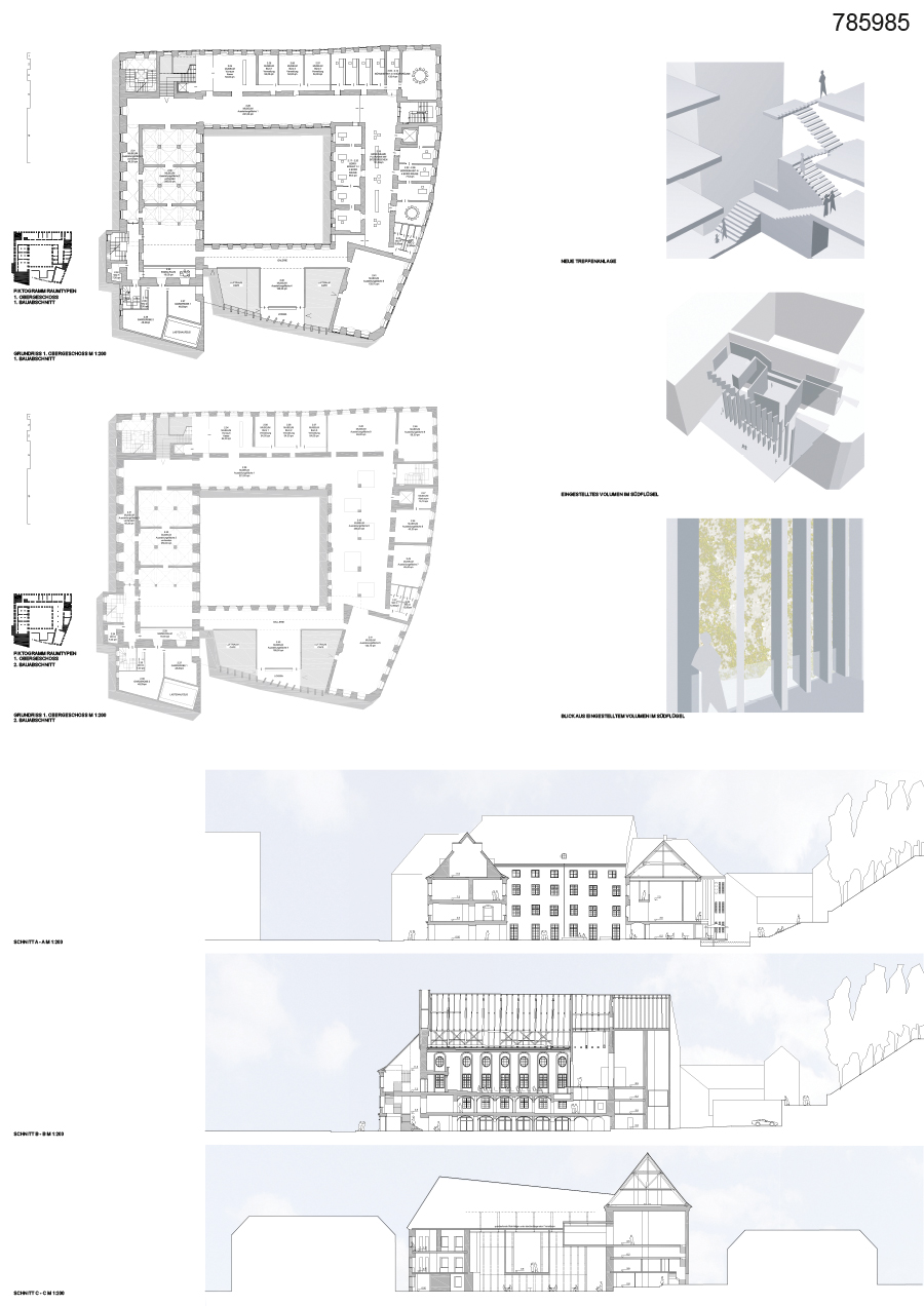 Das Museum sollte nach Ende der Sanierung typologisch als in sich geschlossener Rundgang funktionieren. Die Neustrukturierung des Südflügels ermöglicht die Ausbildung eines 2-geschossigen Ausstellungssaales und eine Sichtbeziehung zum Domberg und seinen Bauten.